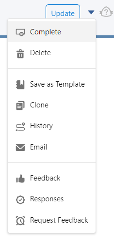 Organizers can send email requests for meeting attendees to get meeting feedback by clicking Request Feedback in the meeting menu. Email will be sent to all the meeting attendees that have not submitted feedback for the meeting.